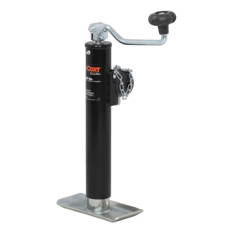 In our goal of being your best source for all things towing. Curt jacks are made with quality to promote the life and function of your trailer, and they come in several different styles to accommodate your needs, whether you are a frequenter of the boat landing, the campground, the racetrack or the field. Curt swivel jacks get their name from the pull-pin swivel feature that allows the jack to pivot on its mounting bracket and swing up and out of the way for travel. Our swivel trailer jacks are broken into two categories pipe mount and bracket mount. This Curt pipe mount swivel jack features a support capacity of 5,000 lbs., a lift capacity of 3,000 lbs. and a travel of 10 in.. It does not matter what kind of trailer you tow a boat trailer, utility trailer, livestock hauler or recreational vehicle trailer if you have a receiver-style trailer, you will want a jack that complements its function.